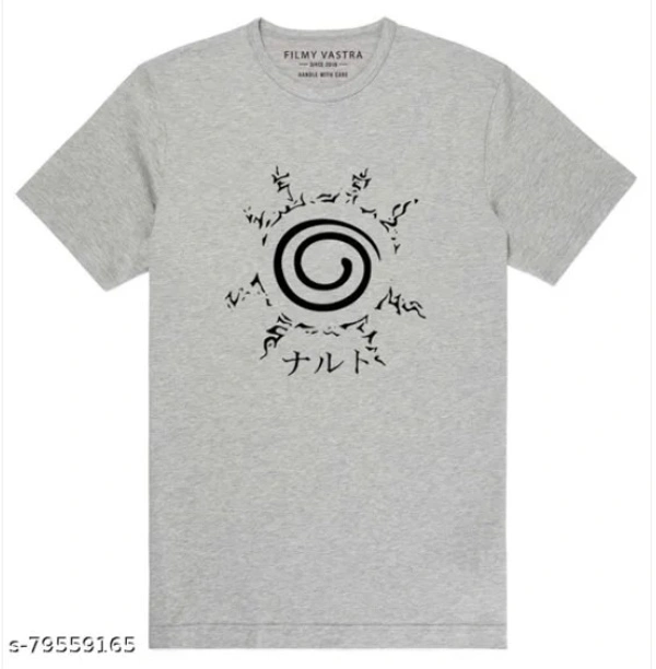 Name : Naruto Kyuubi Seal Anime 100% Grey Cotton T-Shirt